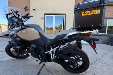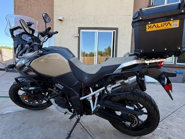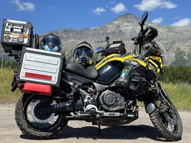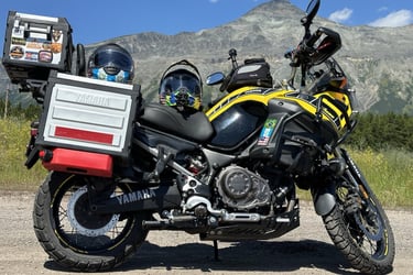 A V-Strom 650 é uma moto versátil, confiável e confortável, perfeita para quem quer encarar aventuras como a rota até o Alasca. Com motor bicilíndrico de 645cc, tem ótimo desempenho e economia de combustível, além de um tanque de 20L que garante boa autonomia.